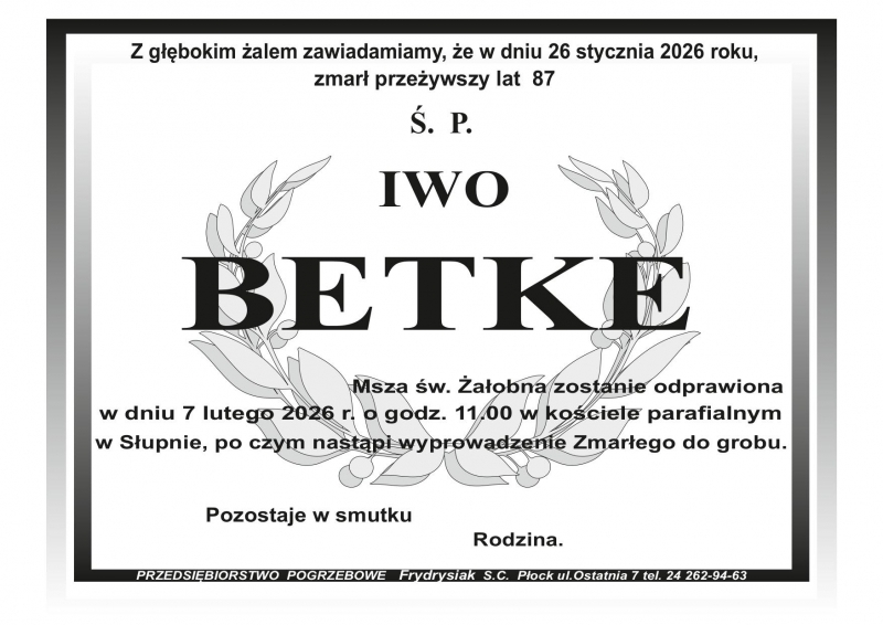 Rodzinie i Bliskim Zmarłego składamy szczere wyrazy współczucia, głębokiego żalu oraz słowa wsparcia i otuchy w tych trudnych chwilach.