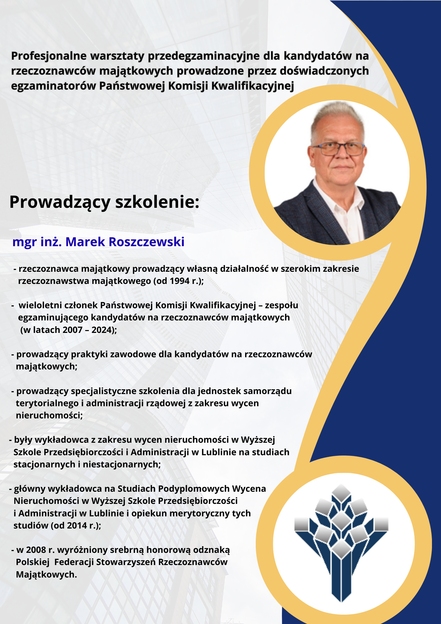 Profesjonalne warsztaty przedegzaminacyjne dla kandydatów na rzeczoznawców majątkowych prowadzone przez doświadczonych egzaminatorów Państwowej Komisji Kwalifikacyjnej w dniach 17-18.02.2026 r.